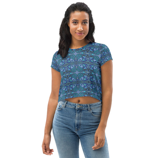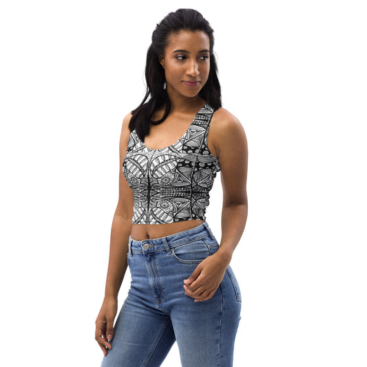 Black and White Tile Pattern - All-Over Print Crop Tee