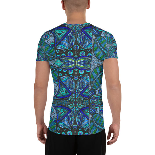Blue Tile Pattern - All-Over Print Men's Athletic T-shirt